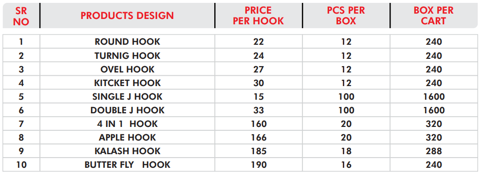 MATERIAL:-Stainless SteelSUITABEL FOR:-Cupboard, Main Door Etc.FINISH:- Mirror Glossy, Brass Antique, BlackSIZE:- 2-4-5-6-8-10-12 Hook AvilabelPremium Quality & Heavy Duty Products